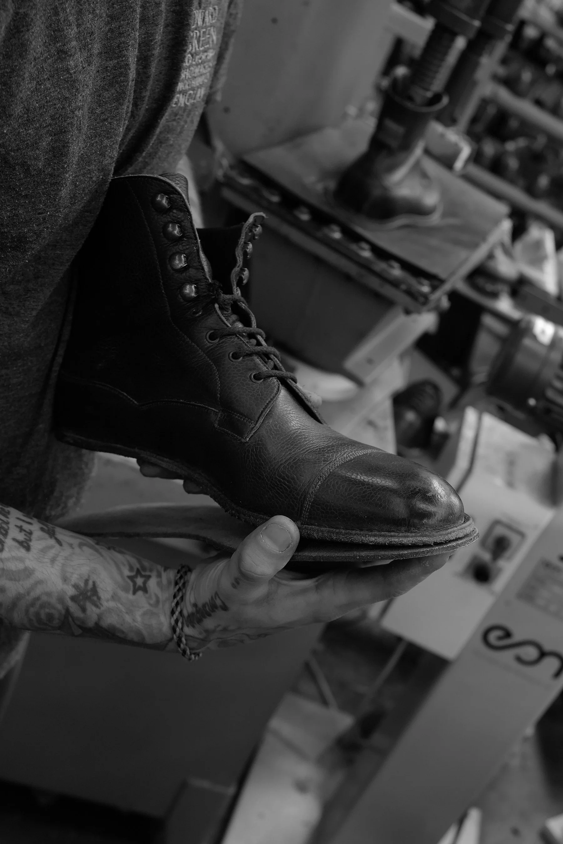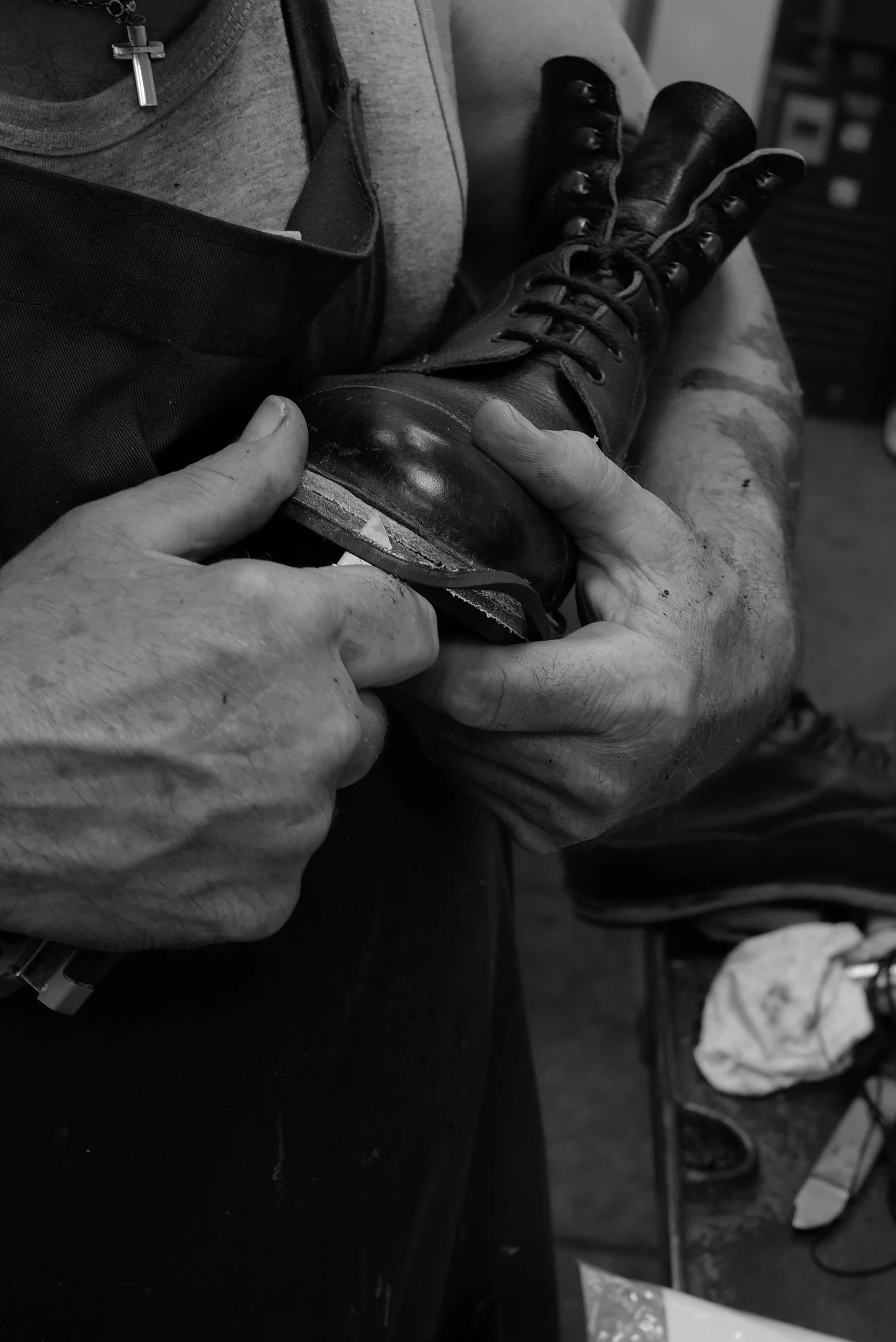 Shot over a number of visits to the Edward Green Factory in Northampton, I watch my beloved Galway boots being resoled.