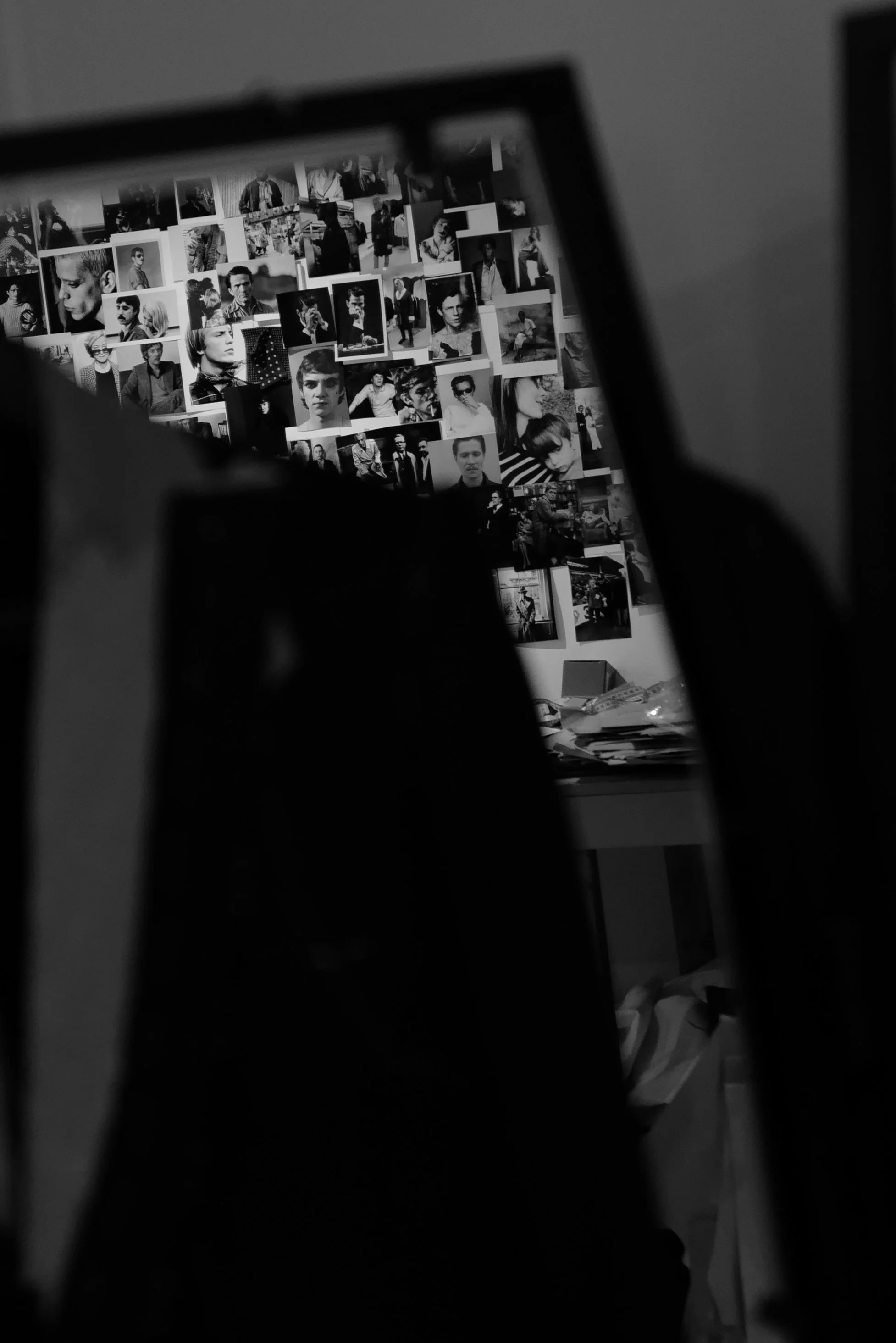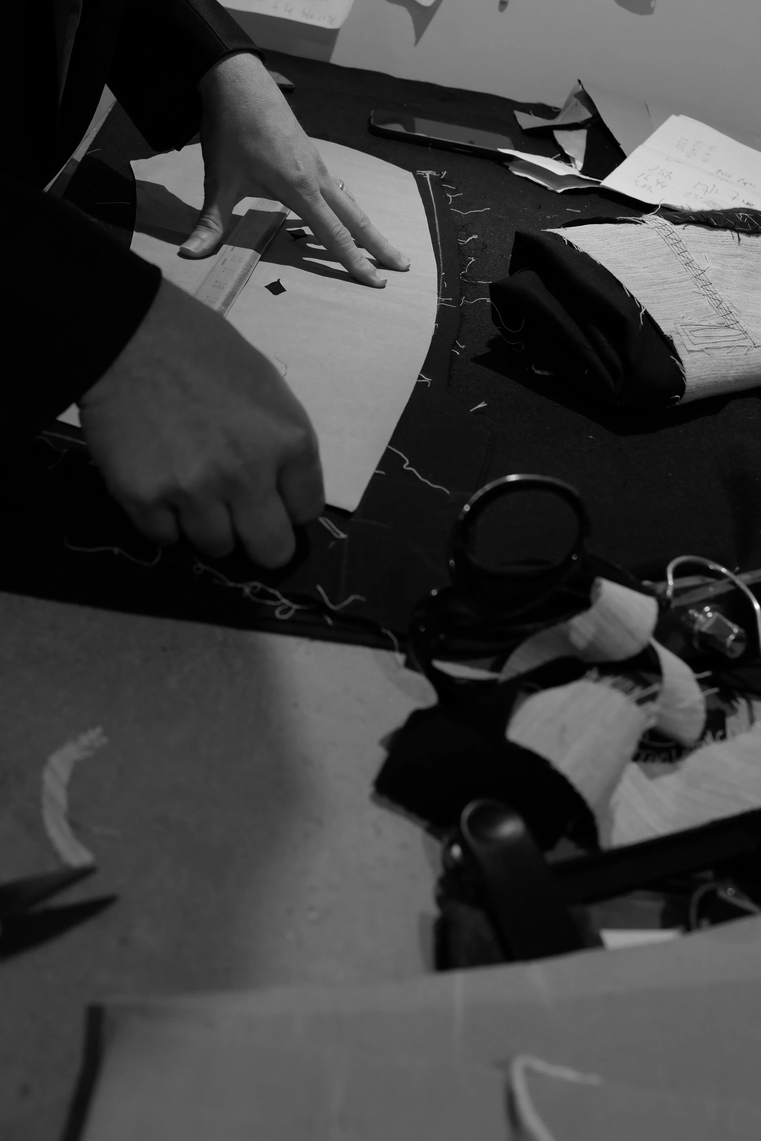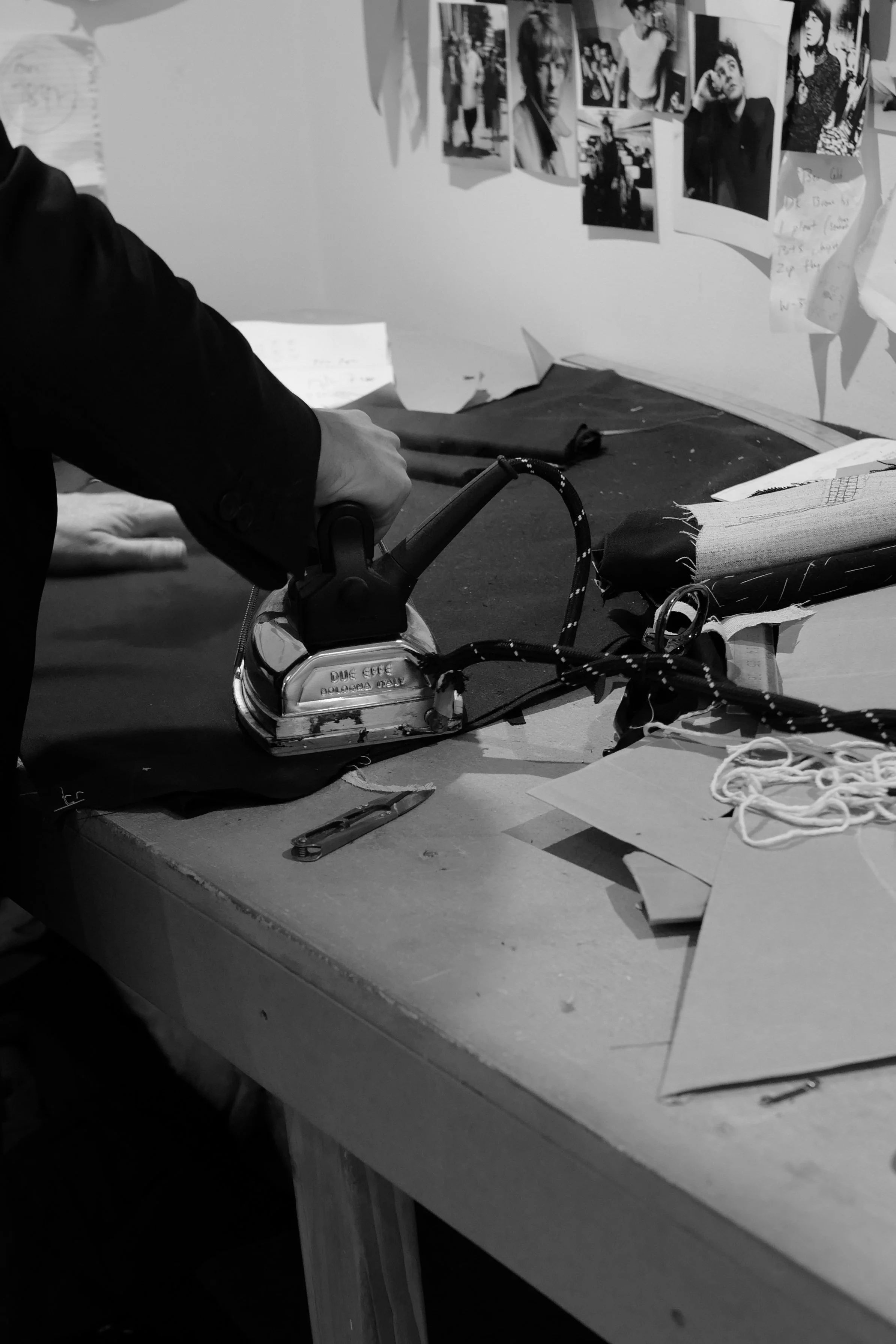 A week later I was stood in his atelier, trying on pieces, taking in the surroundings, the book laden shelves, spotting some I owned and making a list of others to buy, the music, always the music playing and above the cutting table, a wall of influence.